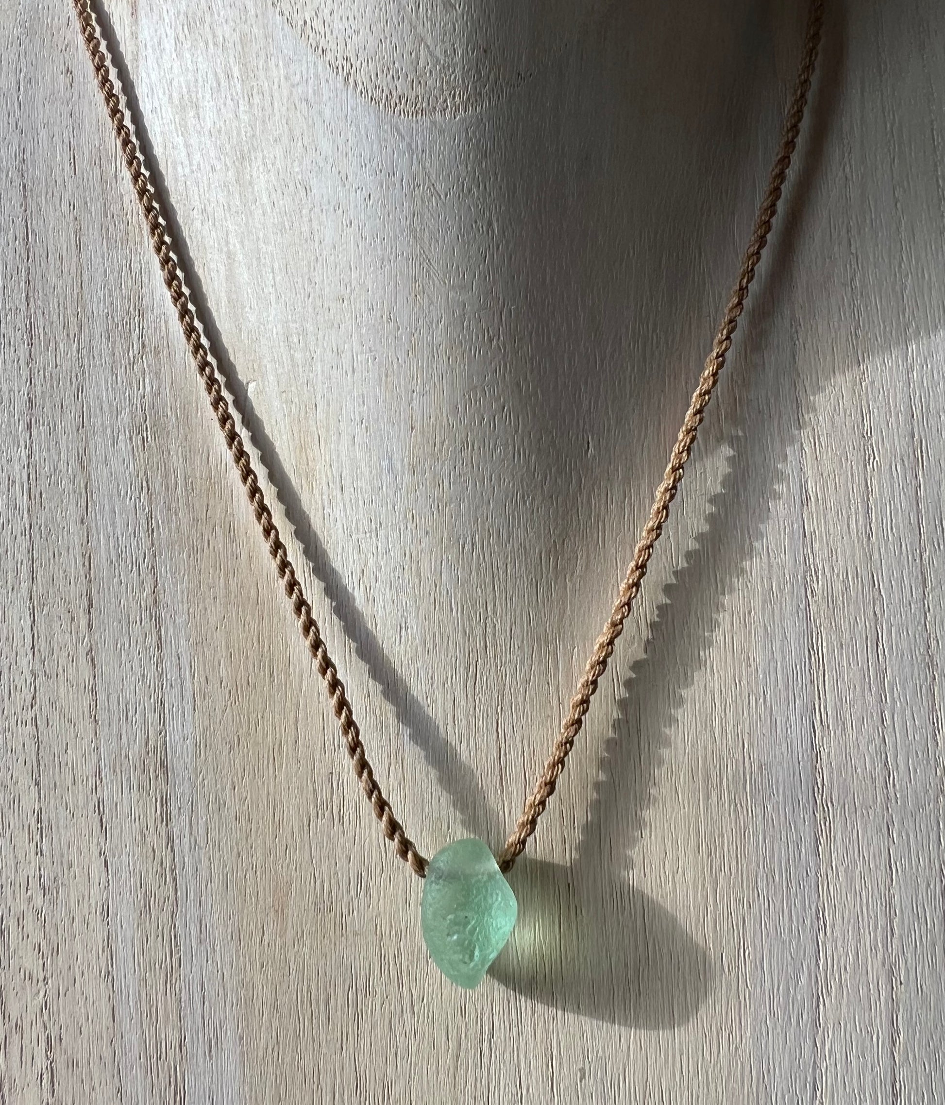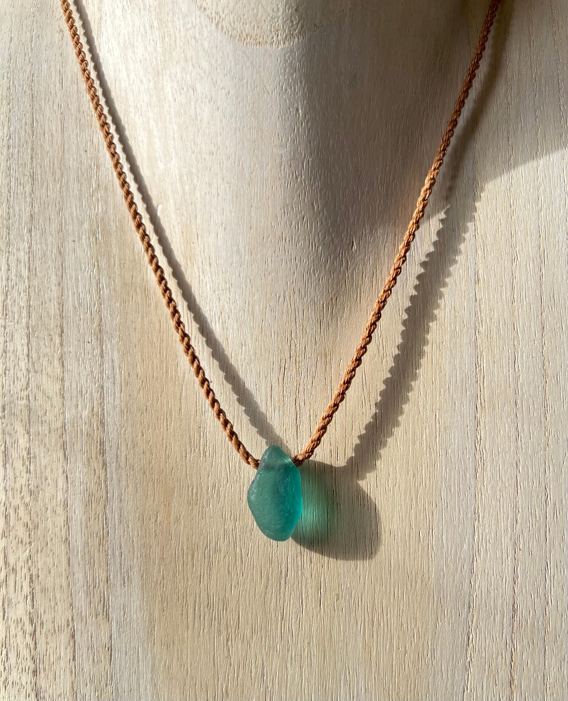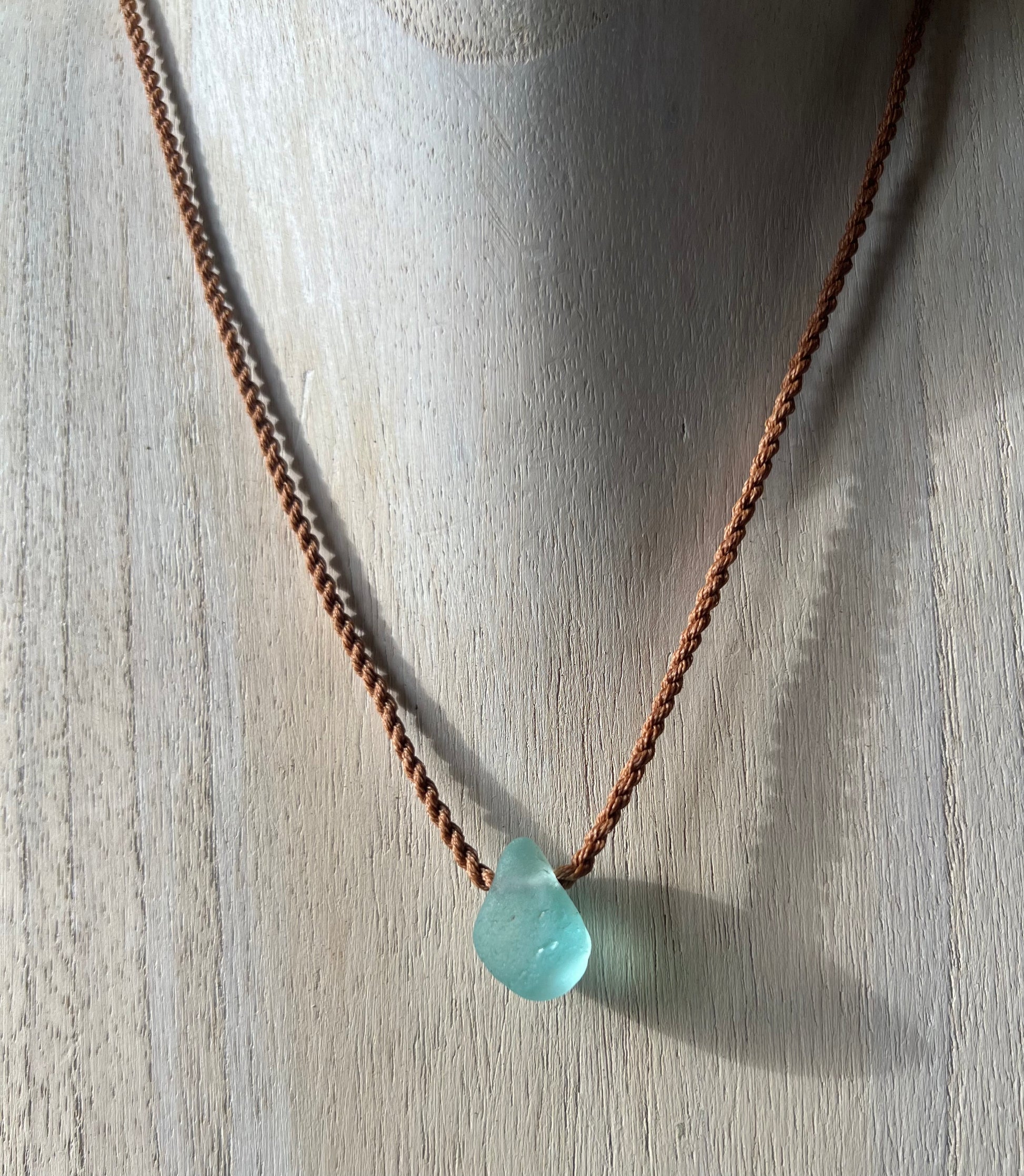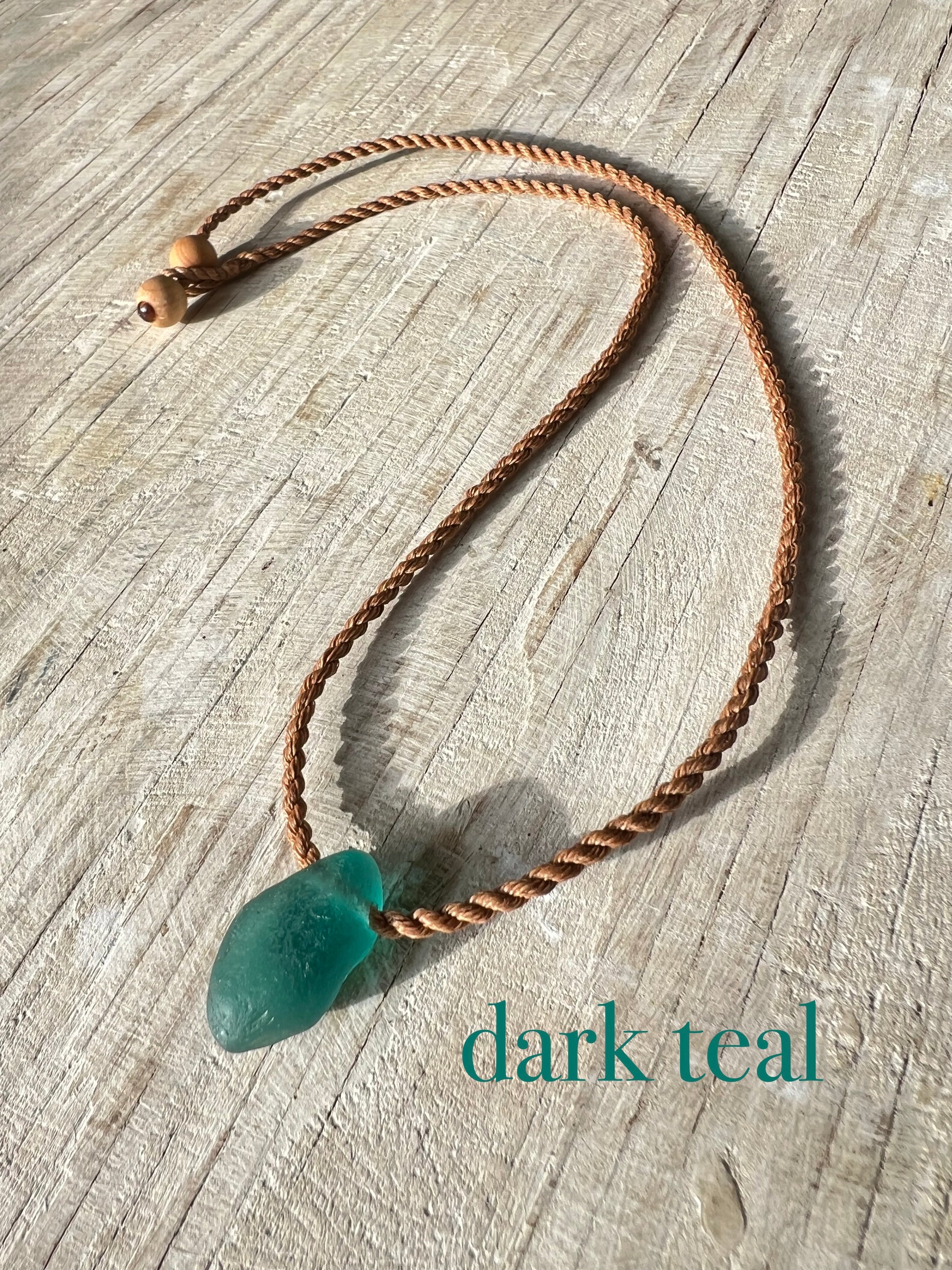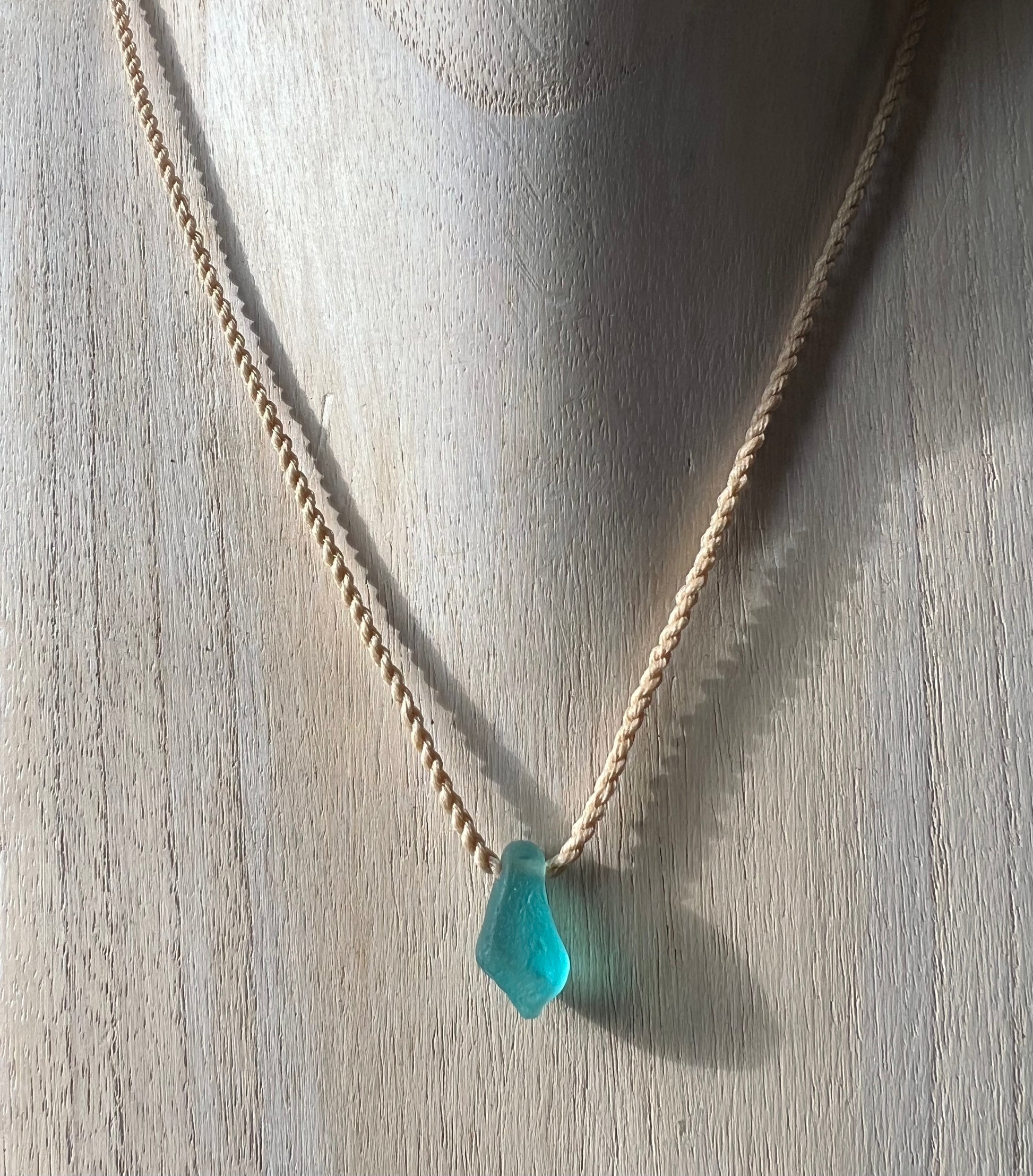 These sea glass pendant necklaces are nothing short of stunning. Their natural pendant shapes might make you think they were DESTINED for this! These pieces of (very old) sea glass have been drilled through the side so that they are able to "float" on their hand twisted rope cord. These gorgeous sea inspired colors absolutely GLOW in the sun.