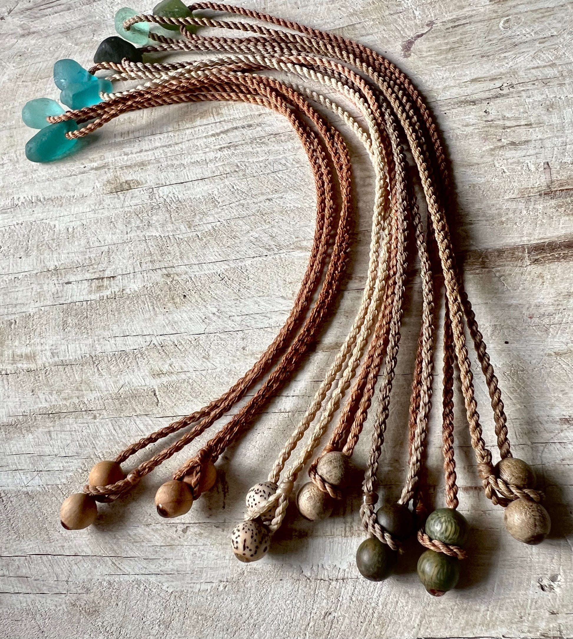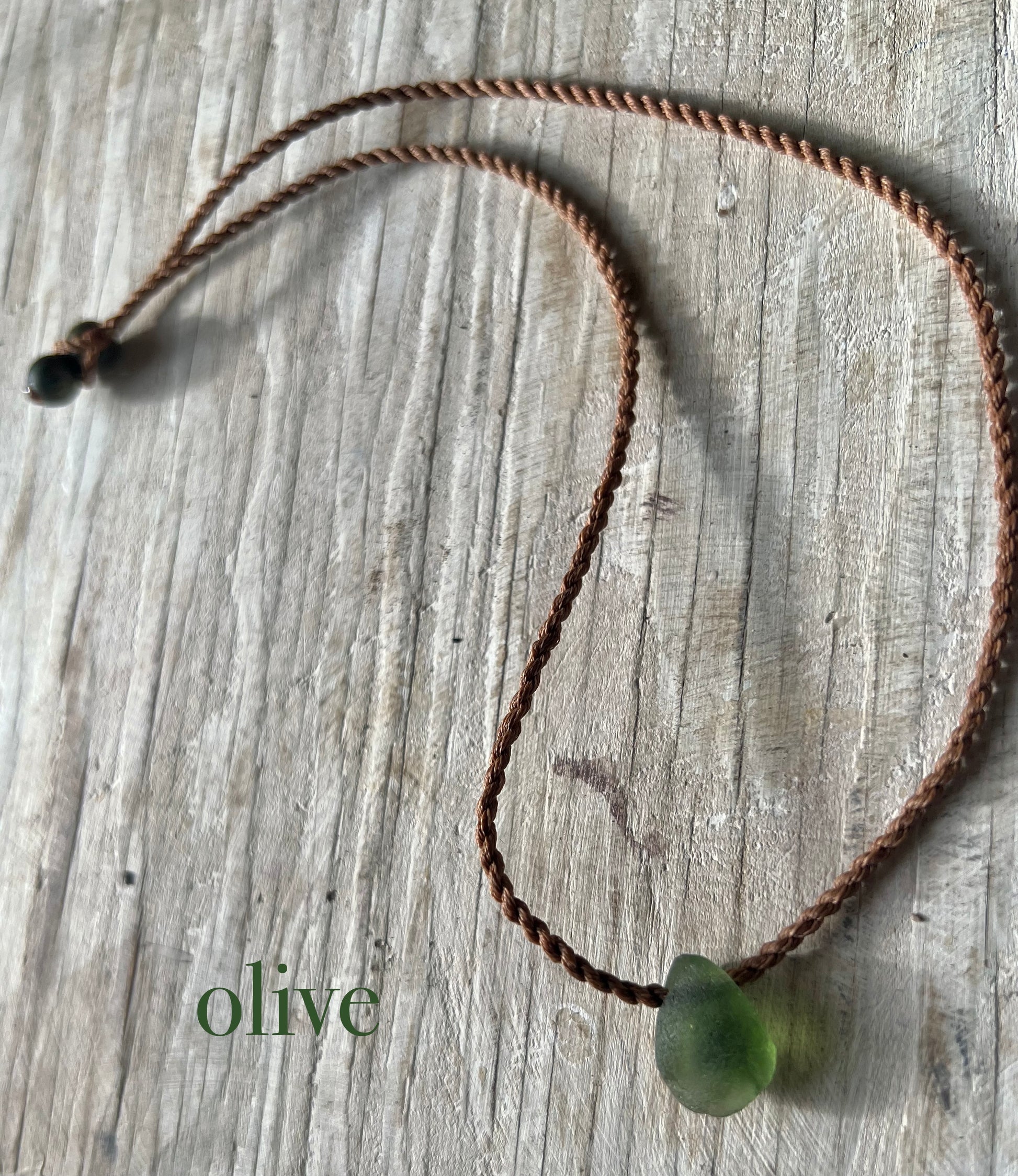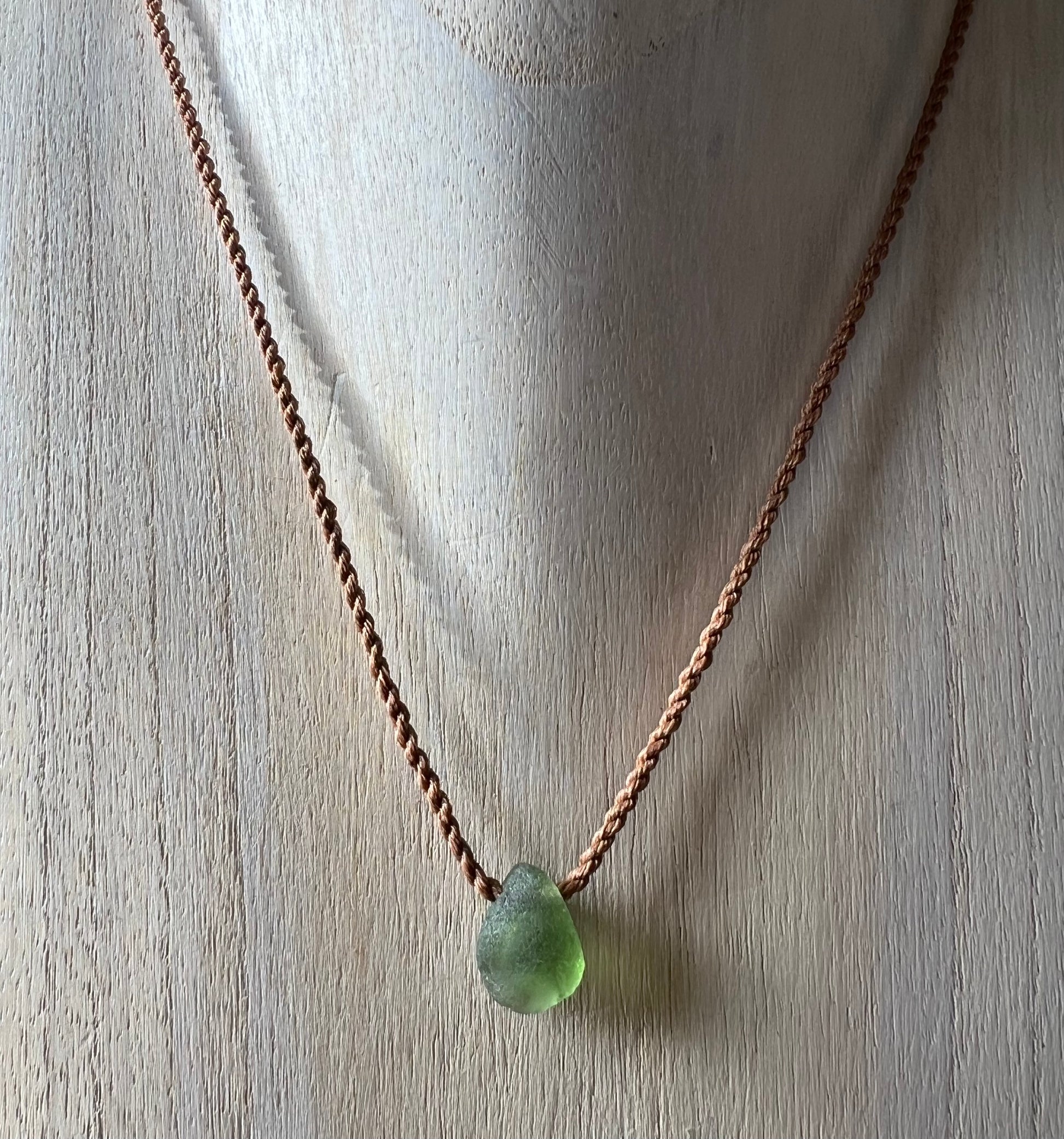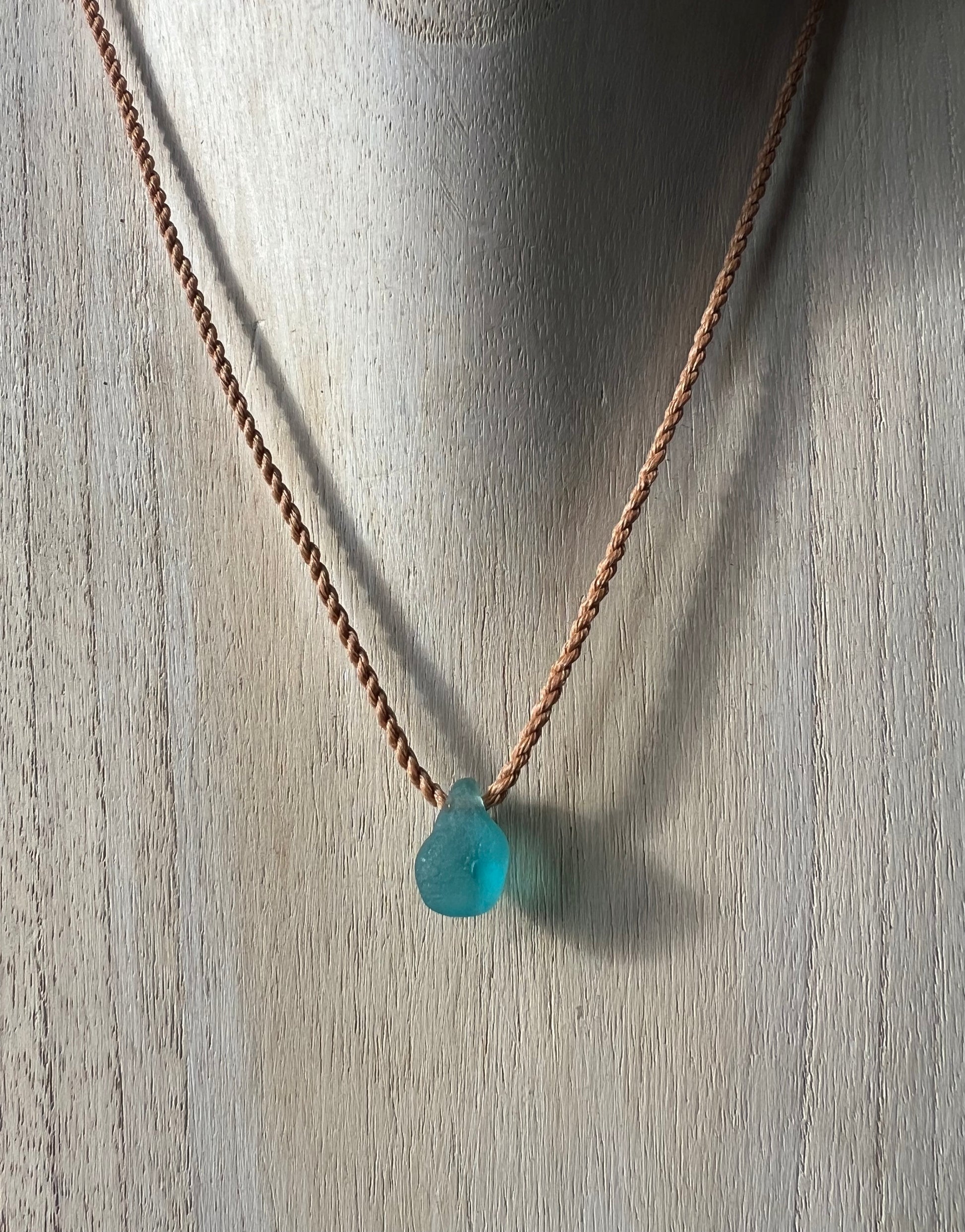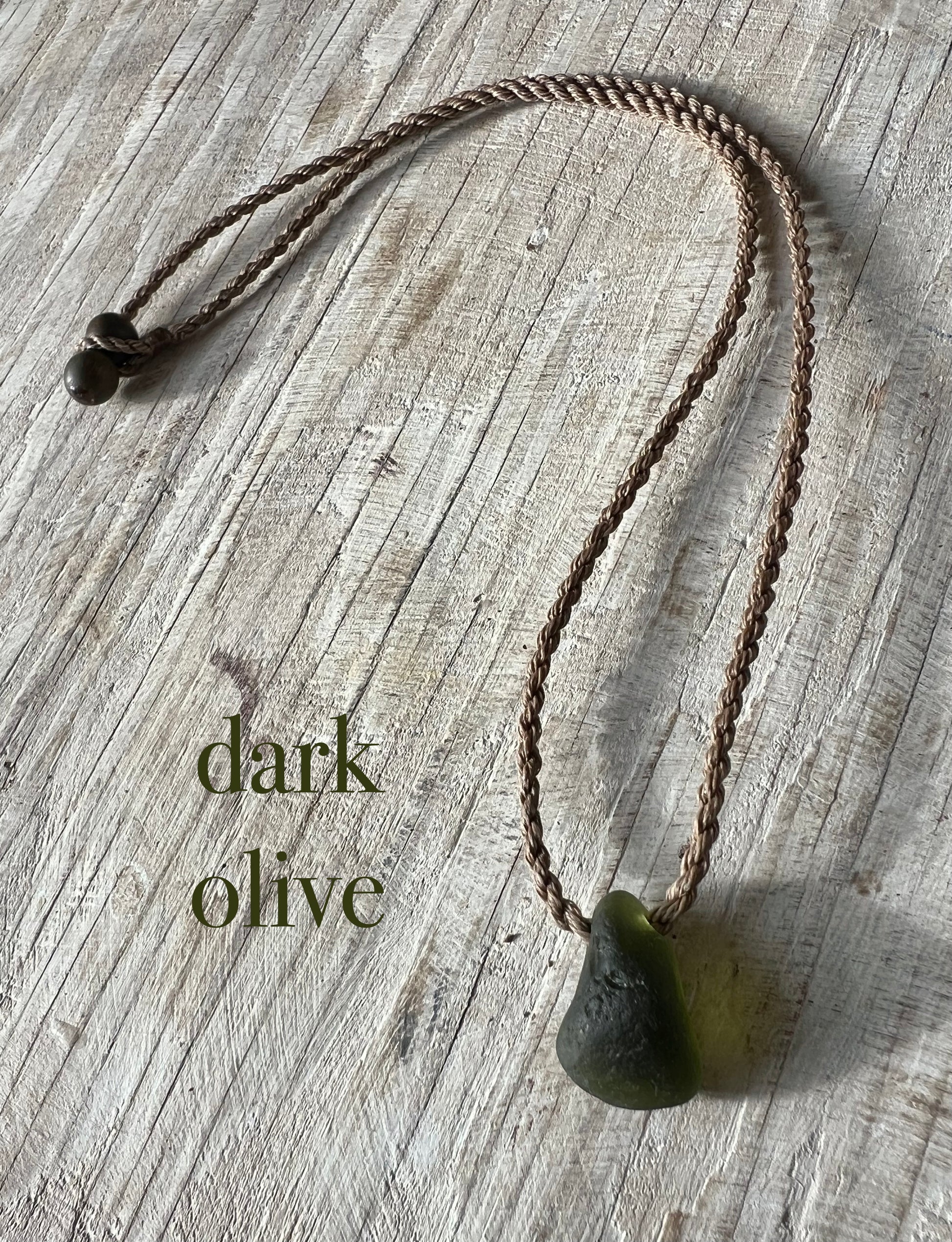 These sea glass pendant necklaces are nothing short of stunning. Their natural pendant shapes might make you think they were DESTINED for this! These pieces of (very old) sea glass have been drilled through the side so that they are able to "float" on their hand twisted rope cord. These gorgeous sea inspired colors absolutely GLOW in the sun.