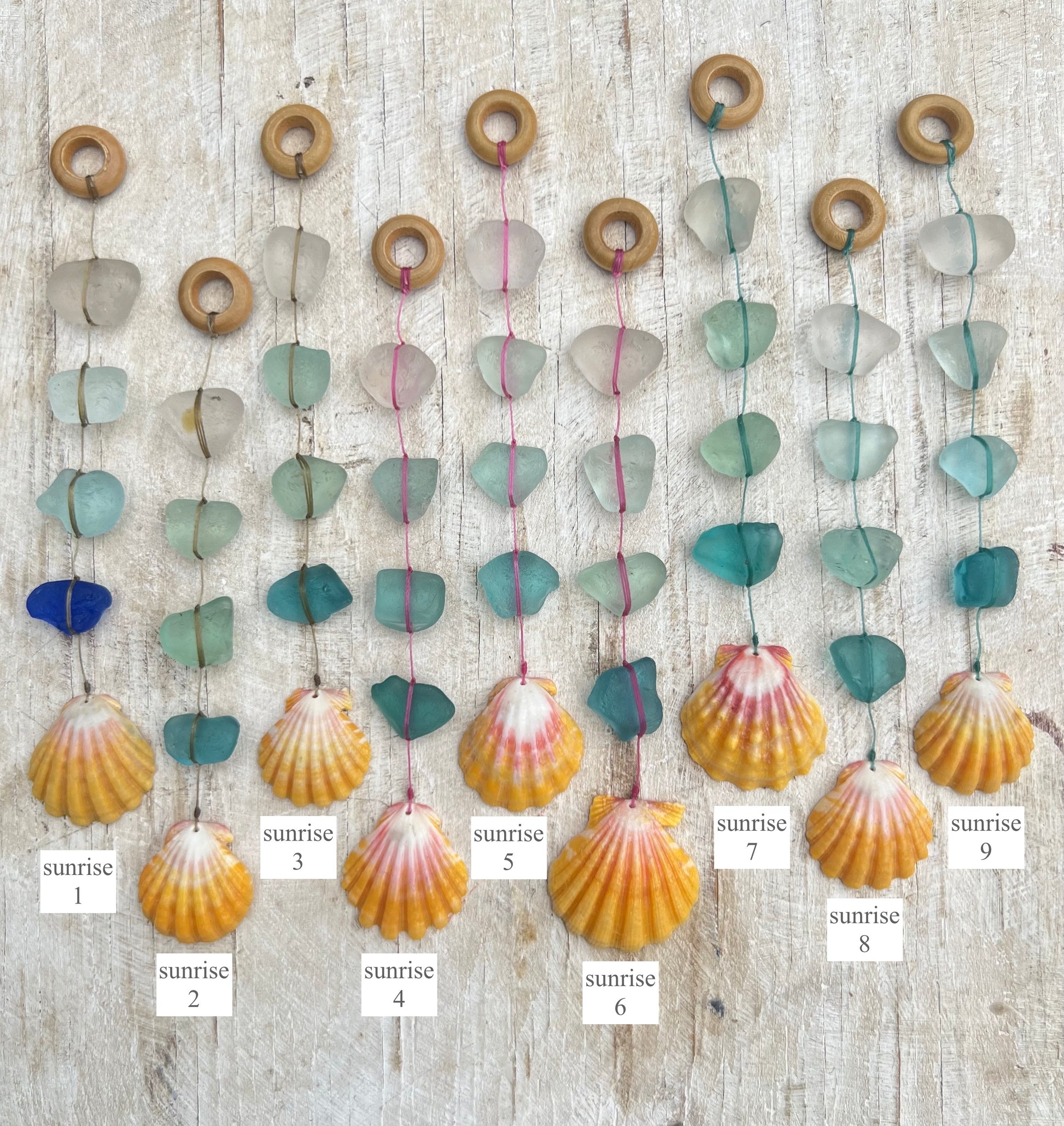 At the end of each Kahiko Sun Catcher is a cone, cowrie, sunrise shell or Swarovski crystal. Shells are collected by either myself, family and friends and are always found empty. We never take live shells.