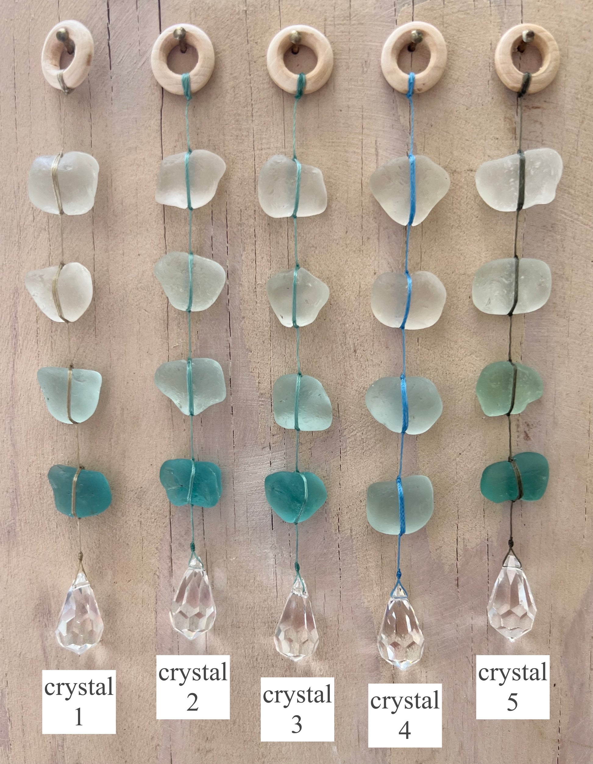 shell or crystal + 4 sea glass nuggets