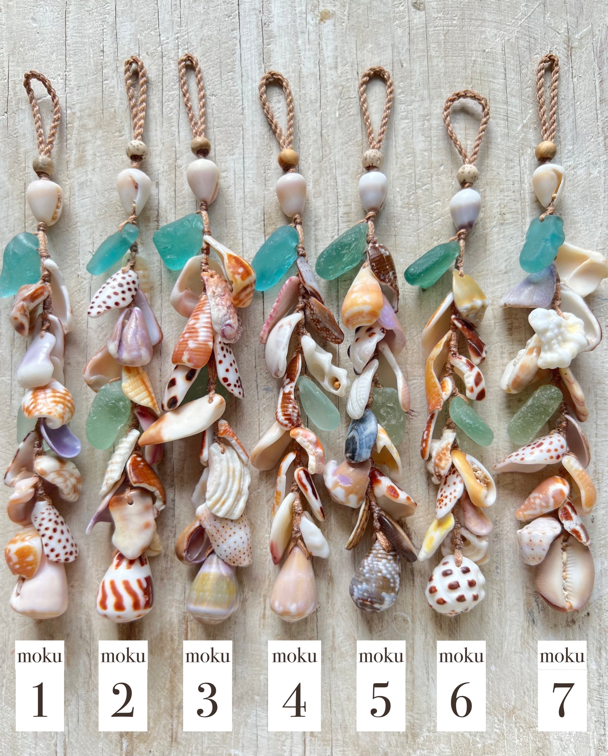 Inspired by the Moku Collection and its beautifully broken, tediously tumbled shell fragments, these Moku Sun Catchers are nothing short of Pacific perfection.
