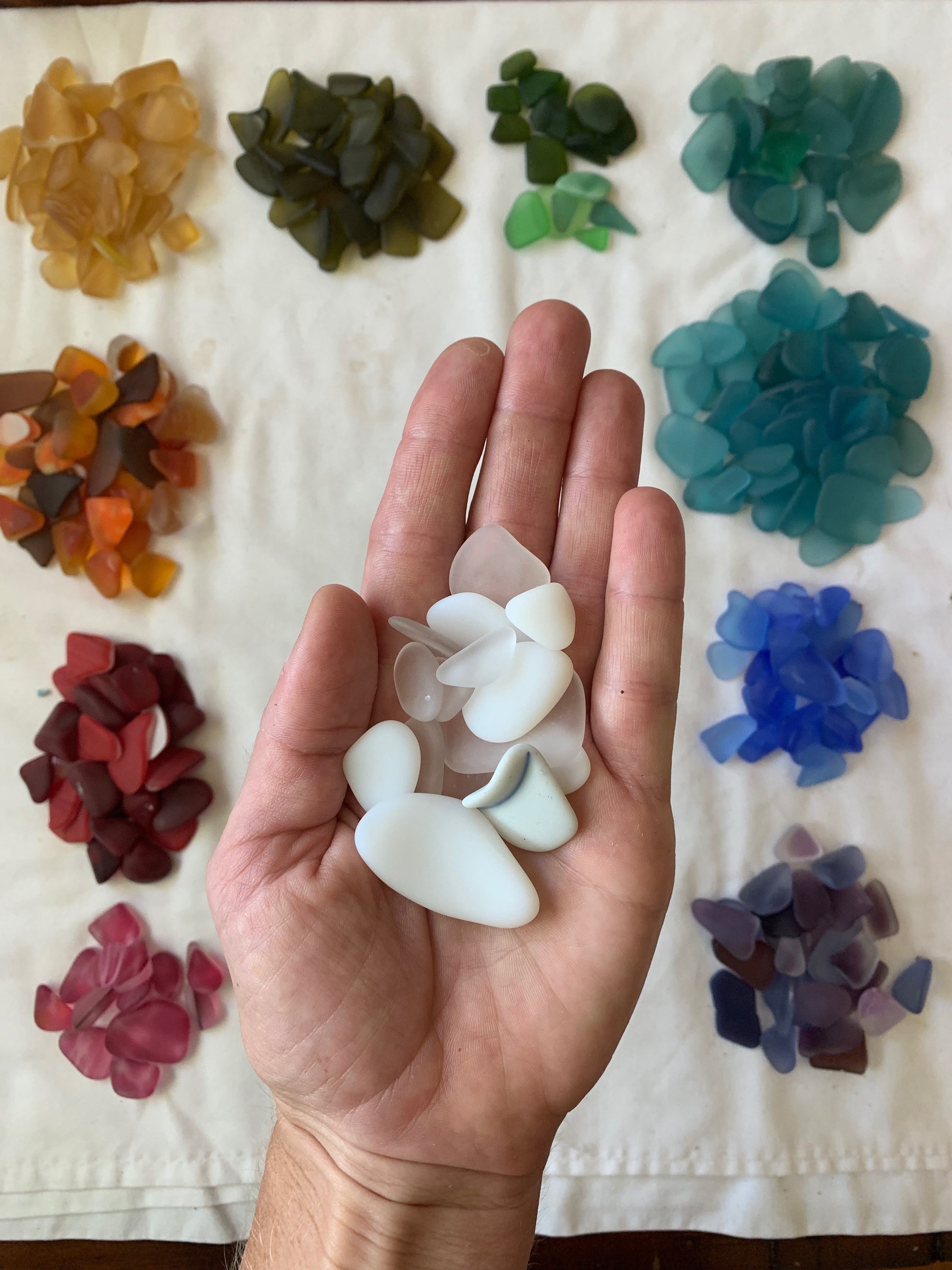 As you scroll through the 'Ōpala Ombre images, you will see the glass as it looks both before and after tumbling. Every piece of glass (and shell) is, of course, different in shape, size, thickness, and has an incredibly unique (and mysterious) story. No two pieces will ever be alike...just like us!