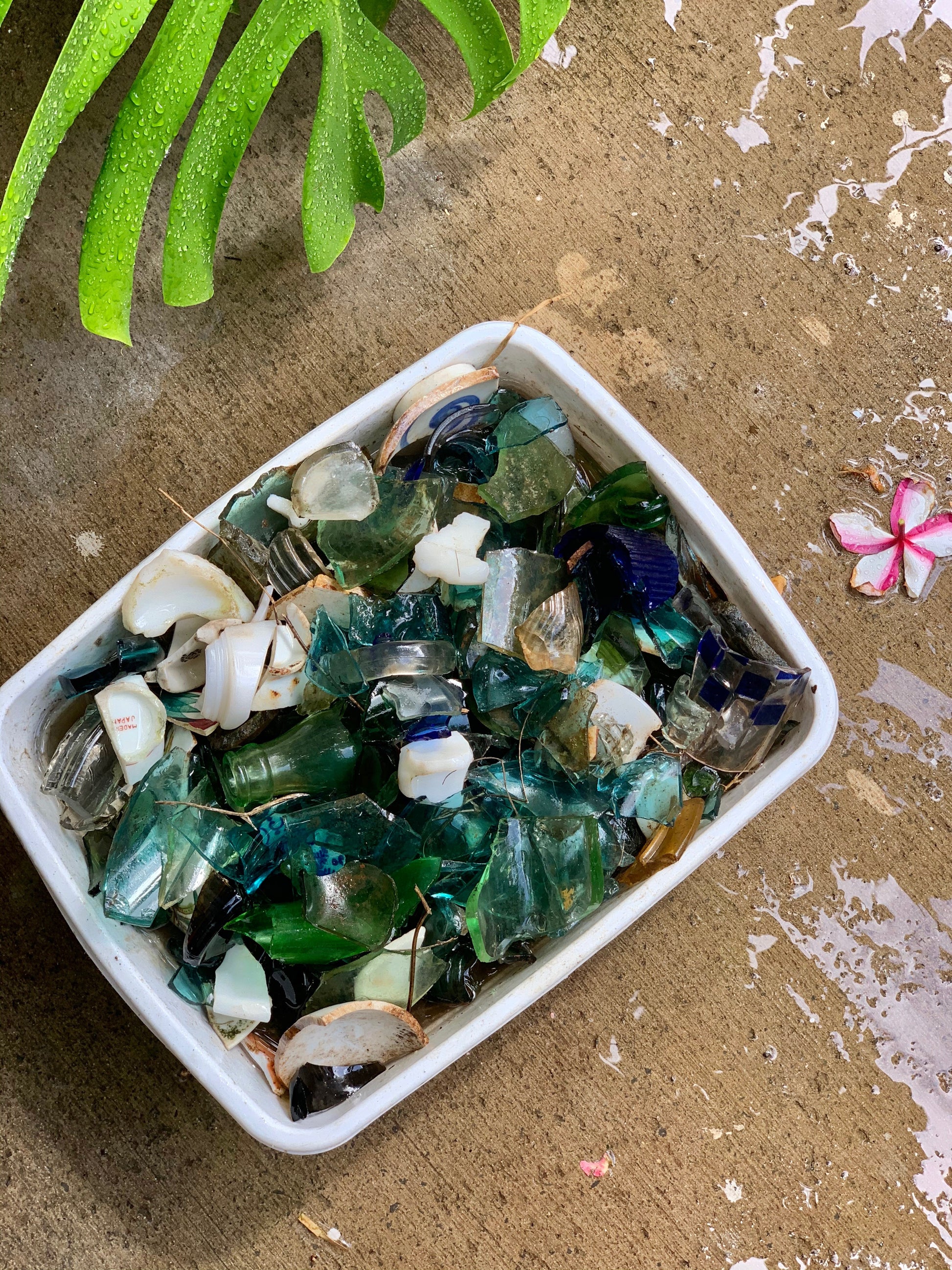 This was the day that the 'Ōpala Ombre was born. Trash was quite literally about to become treasure! What I collected, I took home to break up further and then left in the rock tumbler for about 4 weeks to get clean and smooth. To make the complete "ombre" I sometimes incorporate glass from my own everyday life in the form of alcohol bottles, perfume bottle, broken art glass, etc.