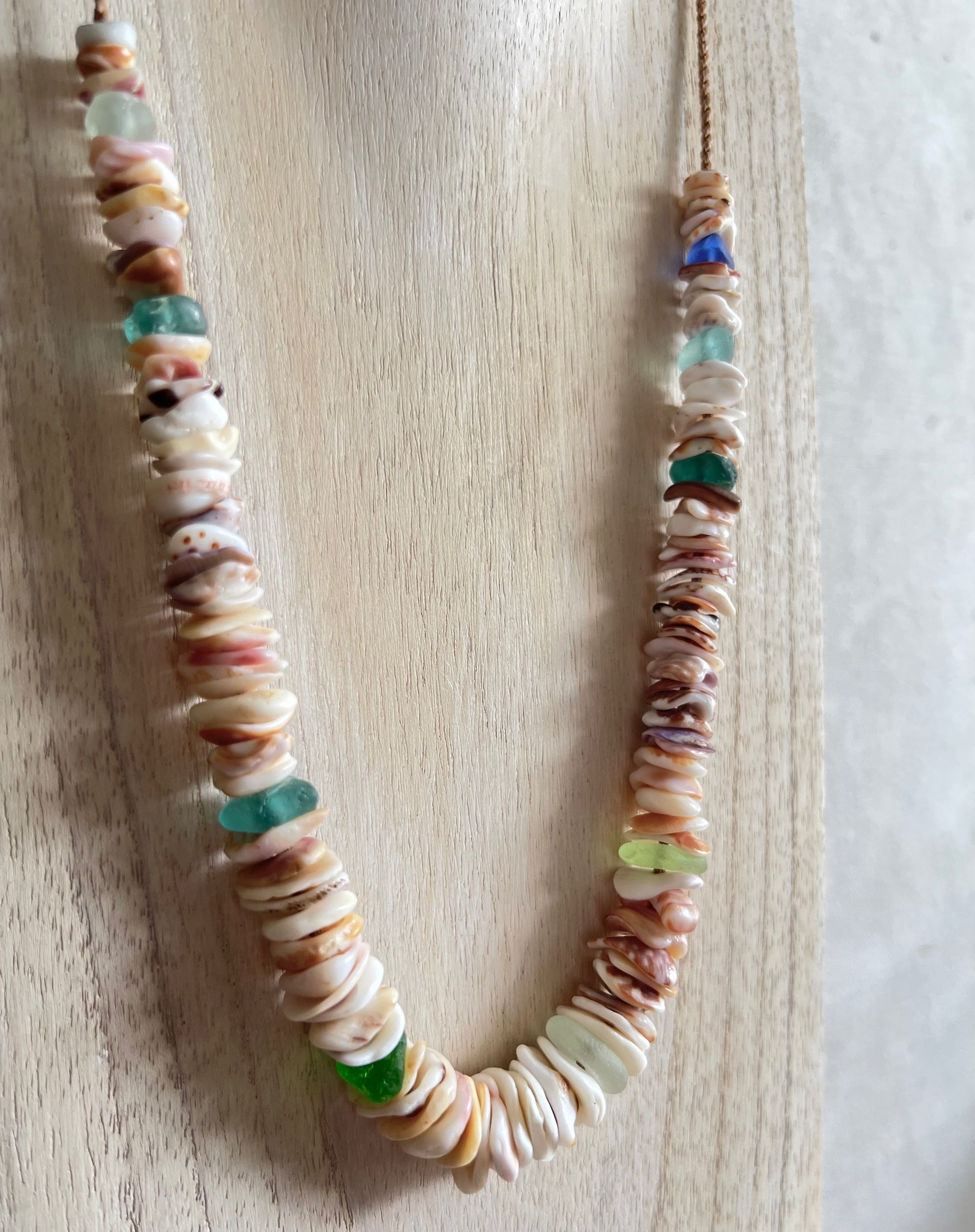 This incredible Hapa+Moku Necklace is a beautiful combination of two of my signature designs: Hapa translates to 'half' in Hawaiian and refers to my signature half rope, half shell design; and Moku translates to 'broken, apart, or piece of' and refers to the collection of shell fragments that make this necklace infinitely unique.