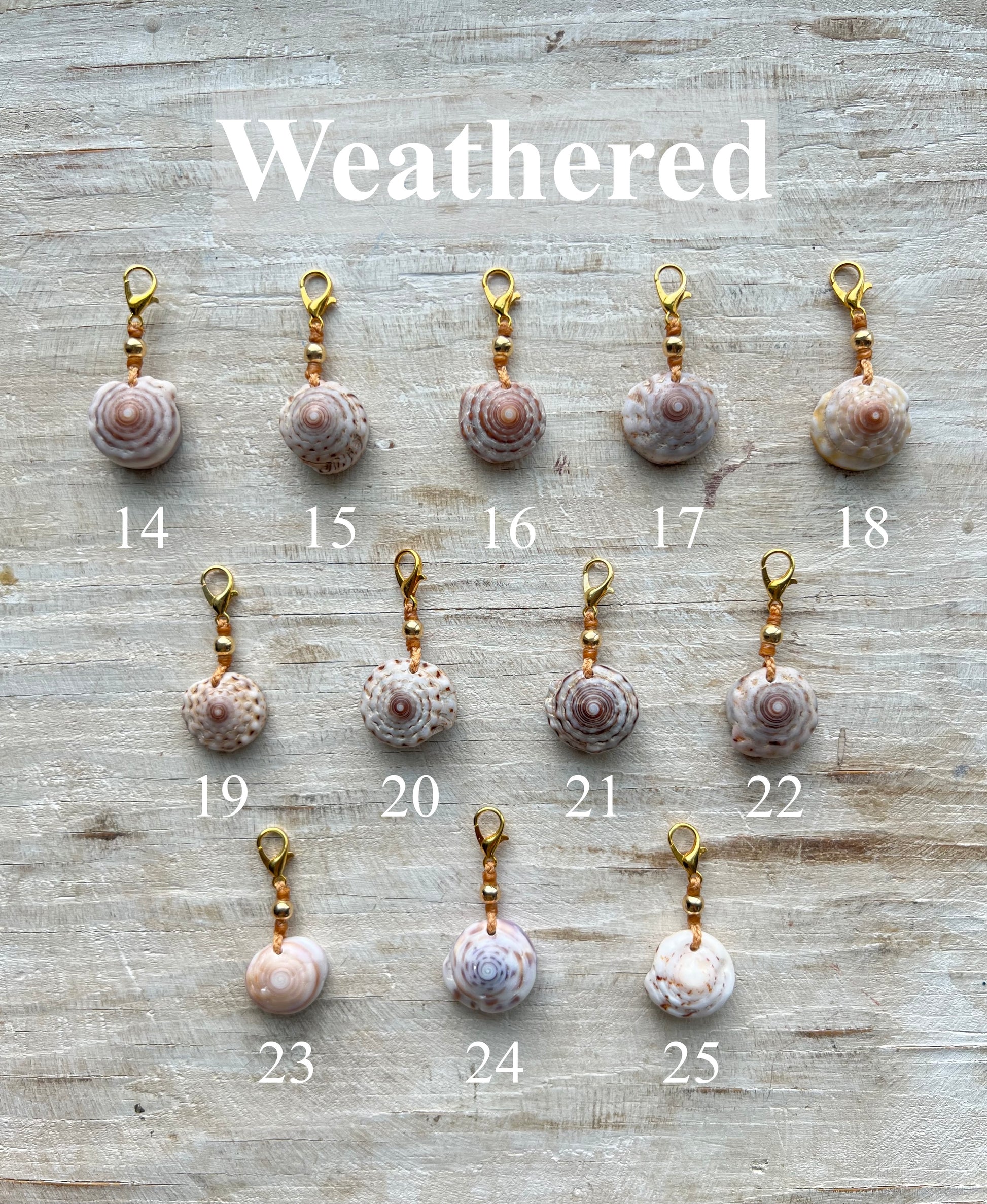 Choose from larger "weathered" cone tops which measure approximately 3/4 inch across, or pick a "polished" shell which measure approximately 5/8 inch across.